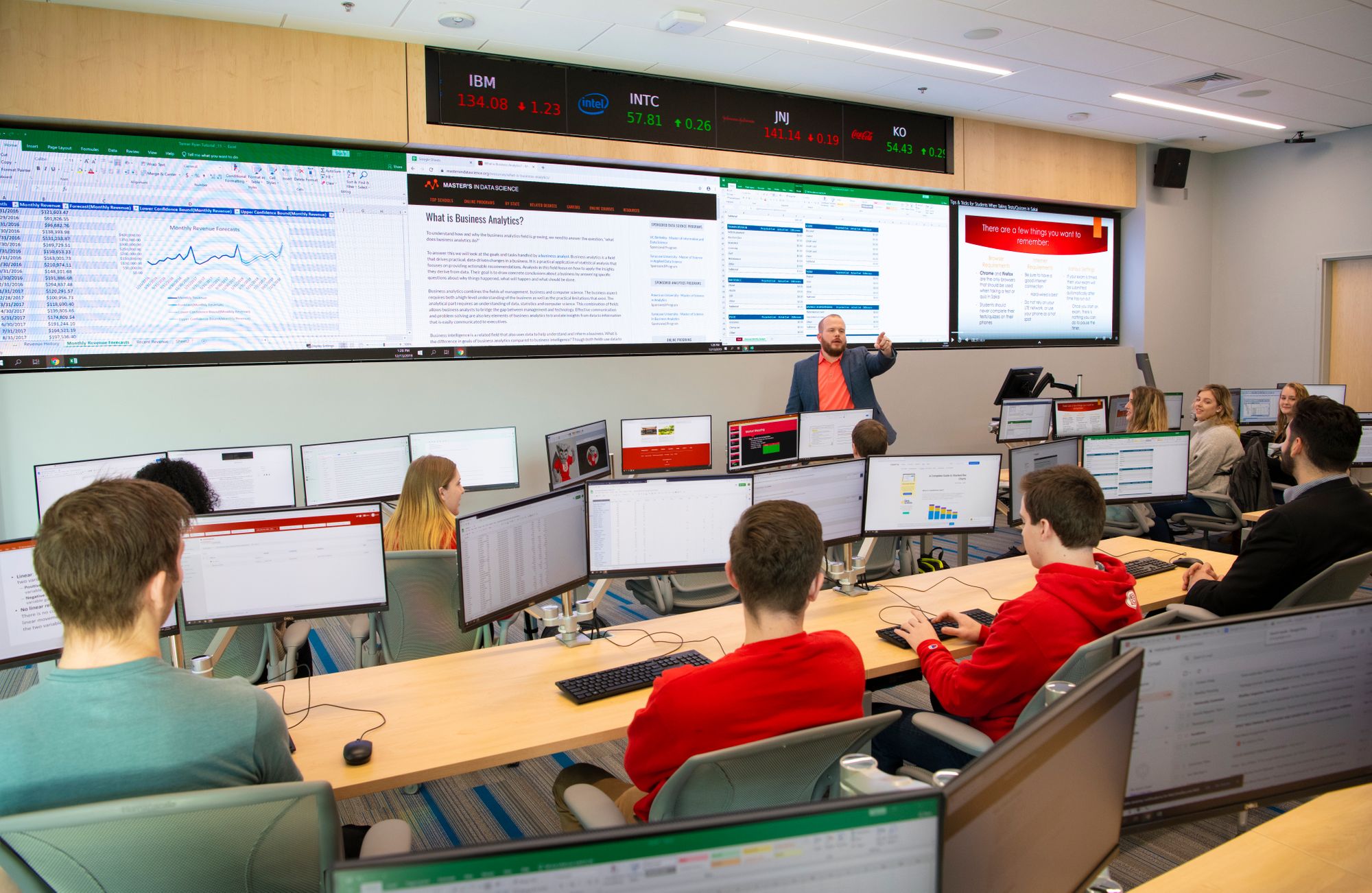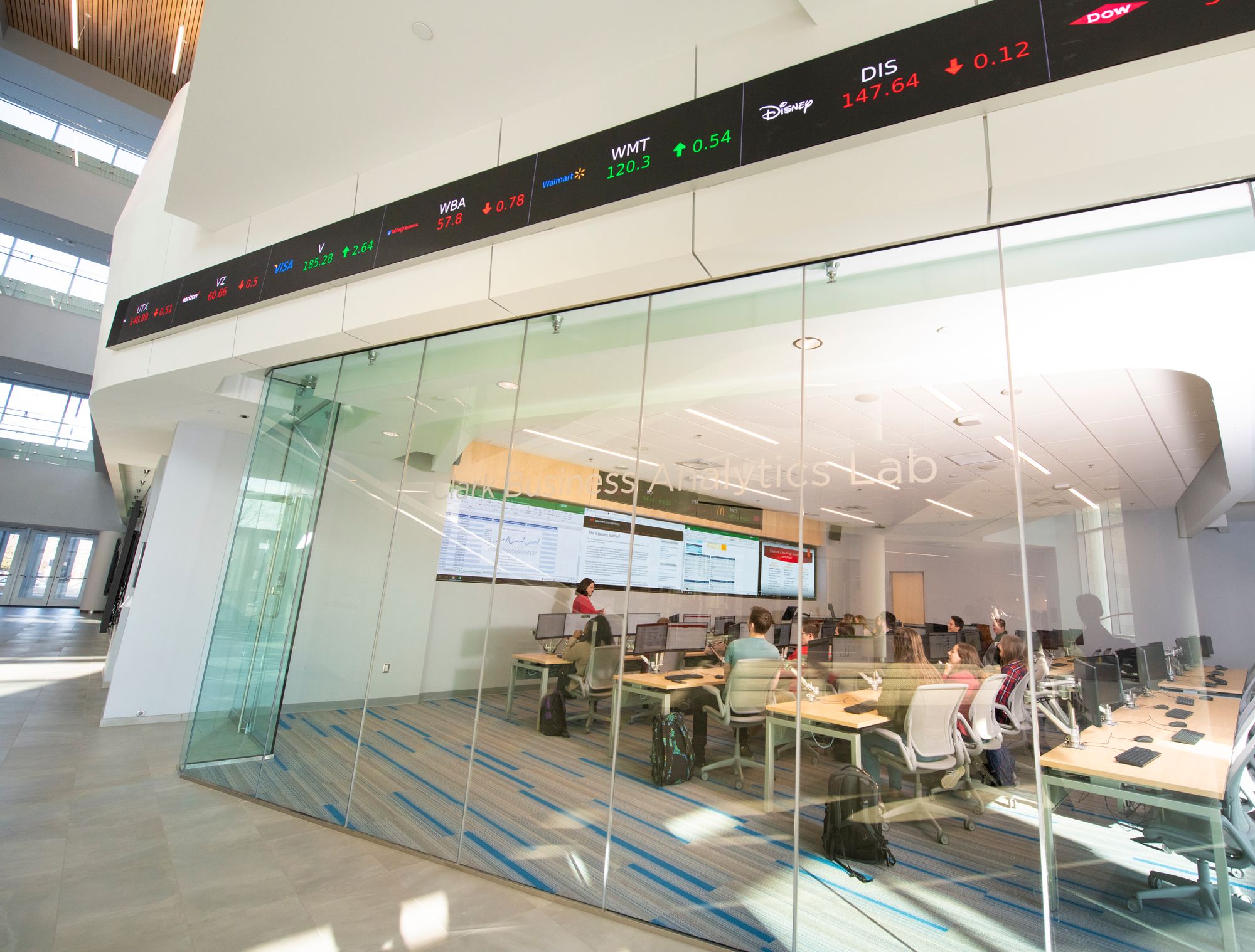 This is why we were excited when Bradley University, a top-ranked institution founded in 1897, reached out to Polygon.io about building a state of the art ticker-tape display in their new Business Analytics Lab, where students gather to learn about quantitative analysis and finance. They had a vision that would not only bring financial market data to the campus, but would supply a whole new set of learning tools and techniques.
