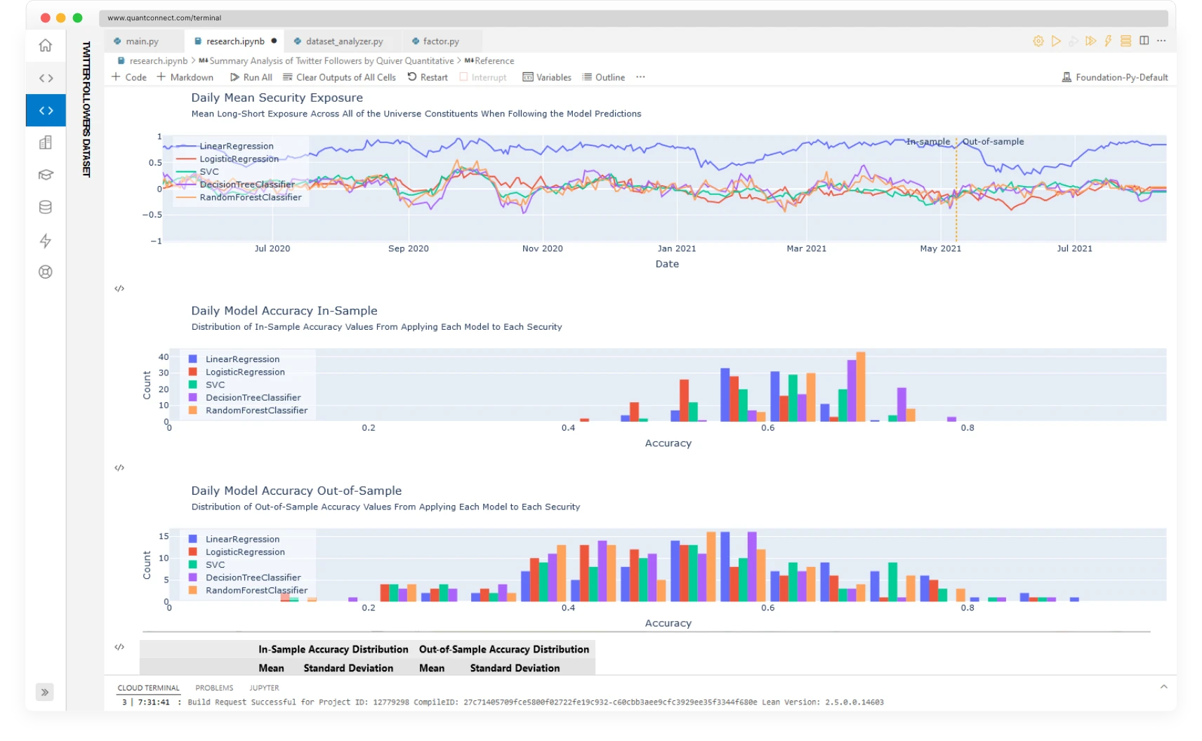 Jupyter Research Environment: Perform interactive strategy research with all the data automatically pulled from the Polygon API with the new QuantConnect integration.