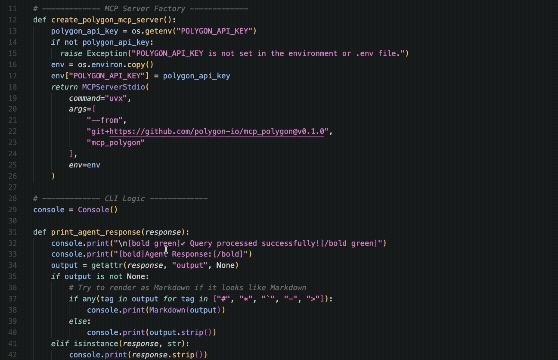 To add in the Polygon.io MCP server to an agentic workflow, you simply need to point it to the repository.